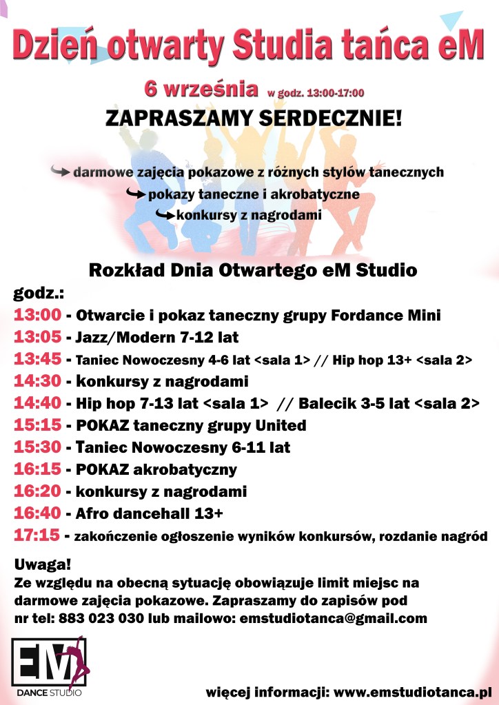 Zapraszamy do zapisów na darmowe zajęcia pokazowe 6 września! Rozkład zajęć: Opublikowane przezemstudiotanca20 sierpnia 202020 sierpnia 2020Opublikowany wBez kategorii Udostępnij: Udostępnij na X (Otwiera się w nowym oknie) X Udostępnij w serwisie Facebook (Otwiera się w nowym oknie) Facebook Lubię Wczytywanie… Powiązane
