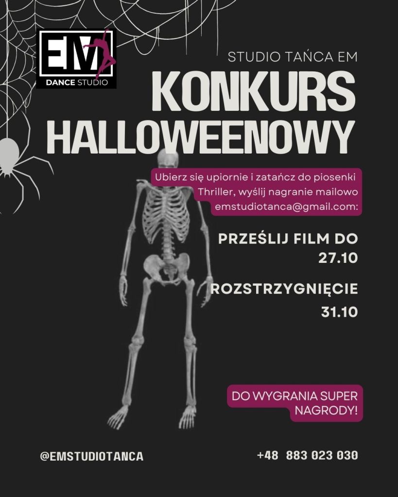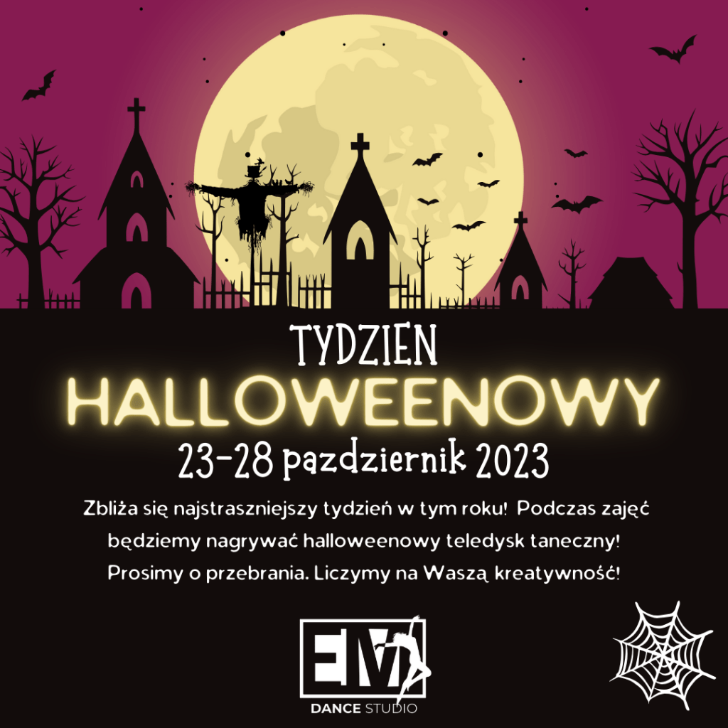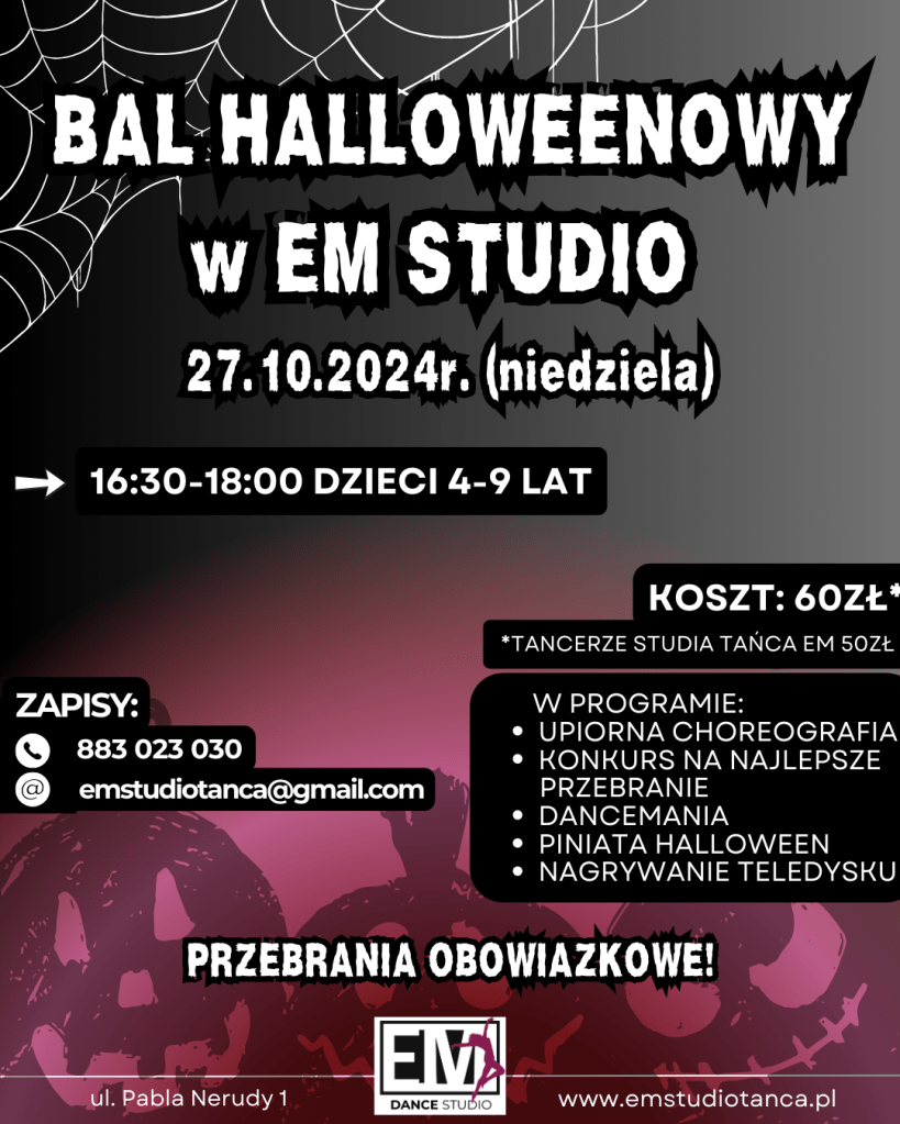 Już 5 listopada serdecznie zapraszamy wszystkich tancerzy, ale nie tylko, na BAL HALLOWEENOWY dla dzieci w wieku 3-6 lat oraz 7-12 lat w Studiu Tańca eM!
