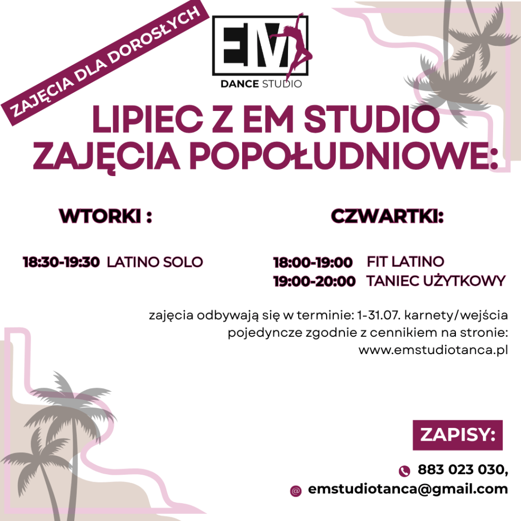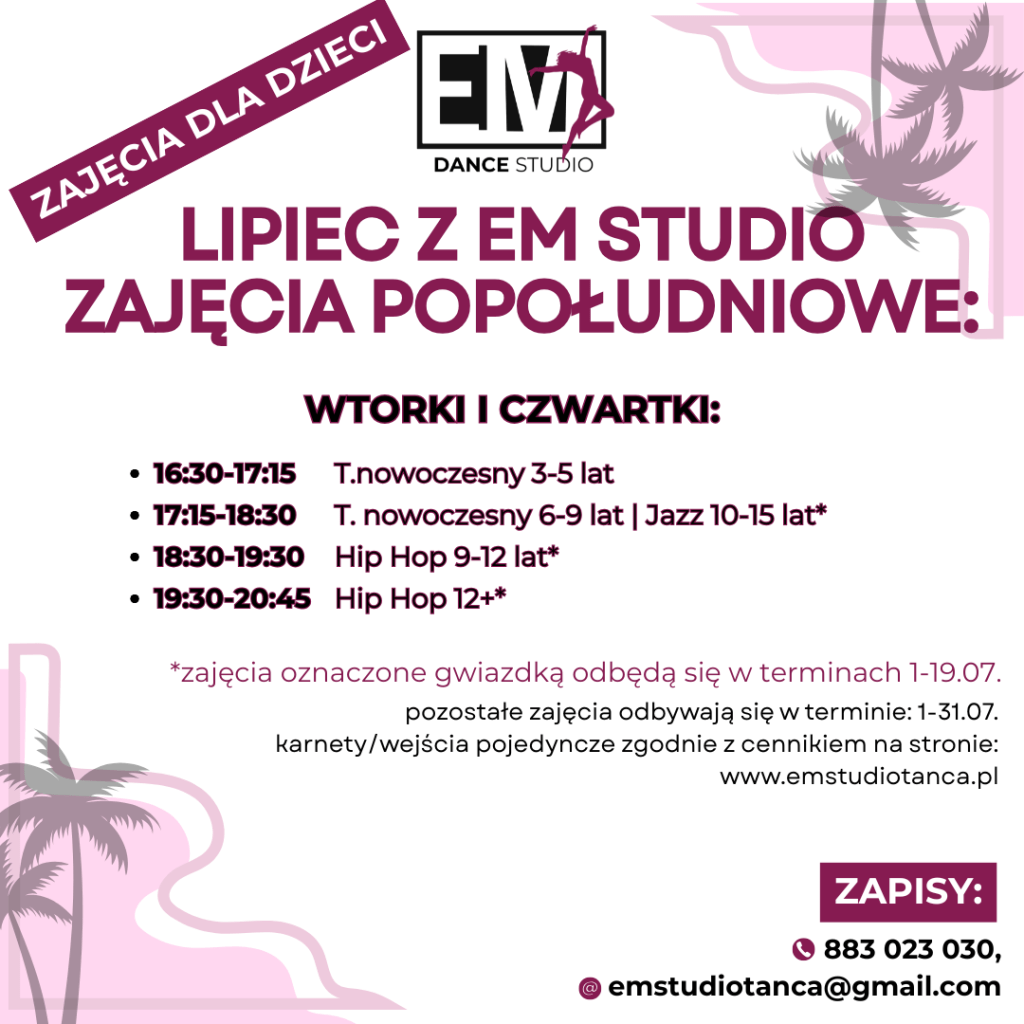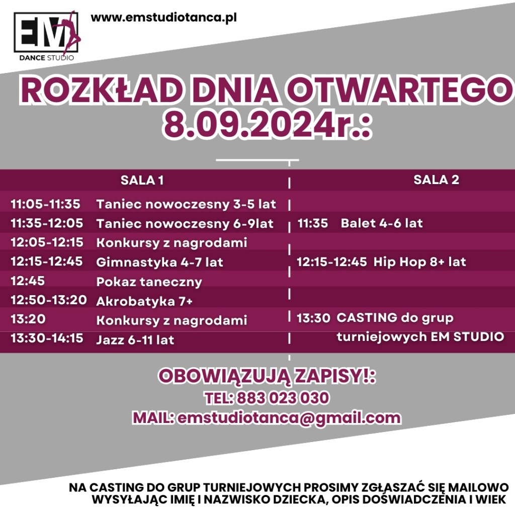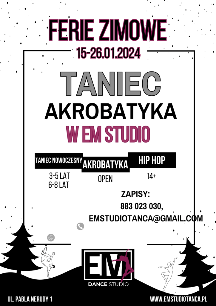 Zapisy: 883 023 030 lub mailowo: emstudiotanca@gmail.com