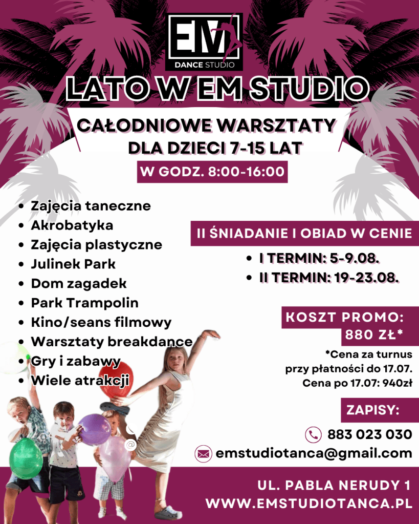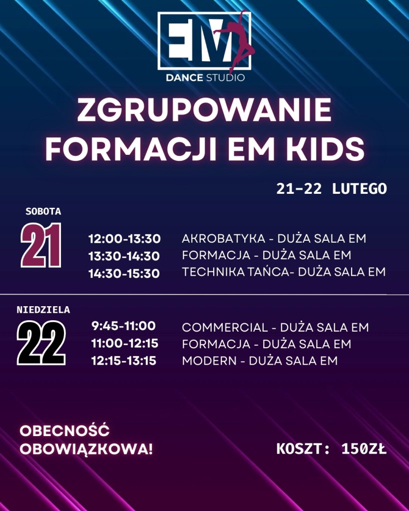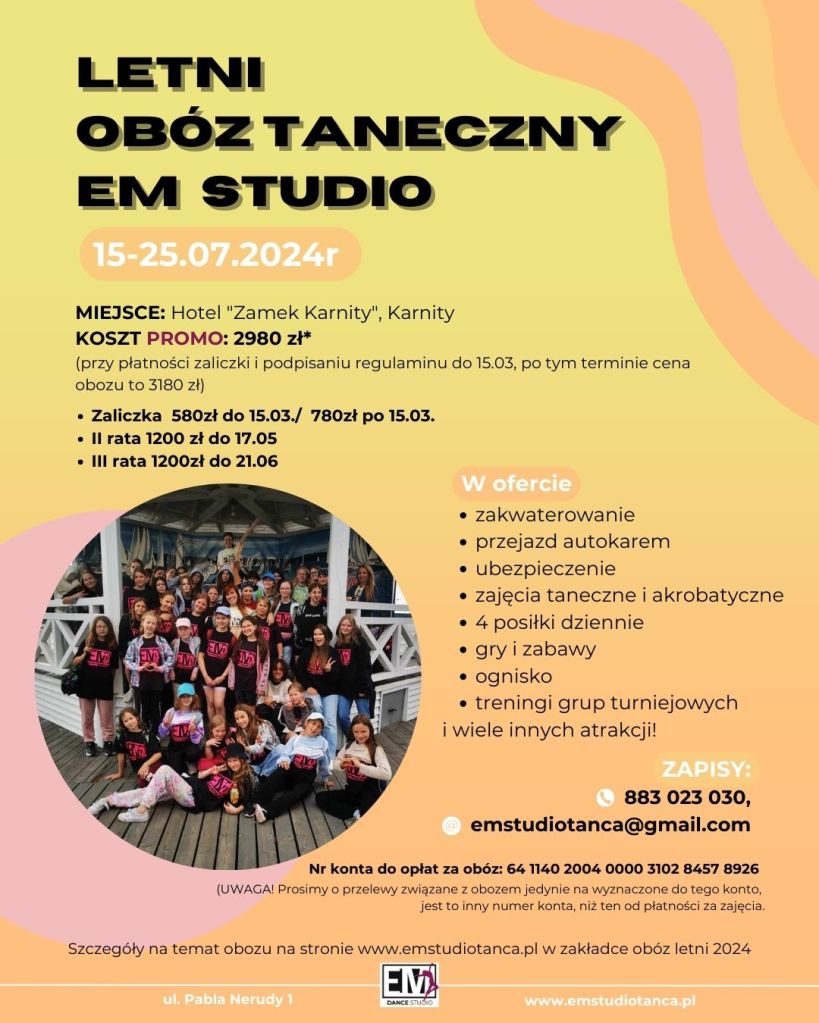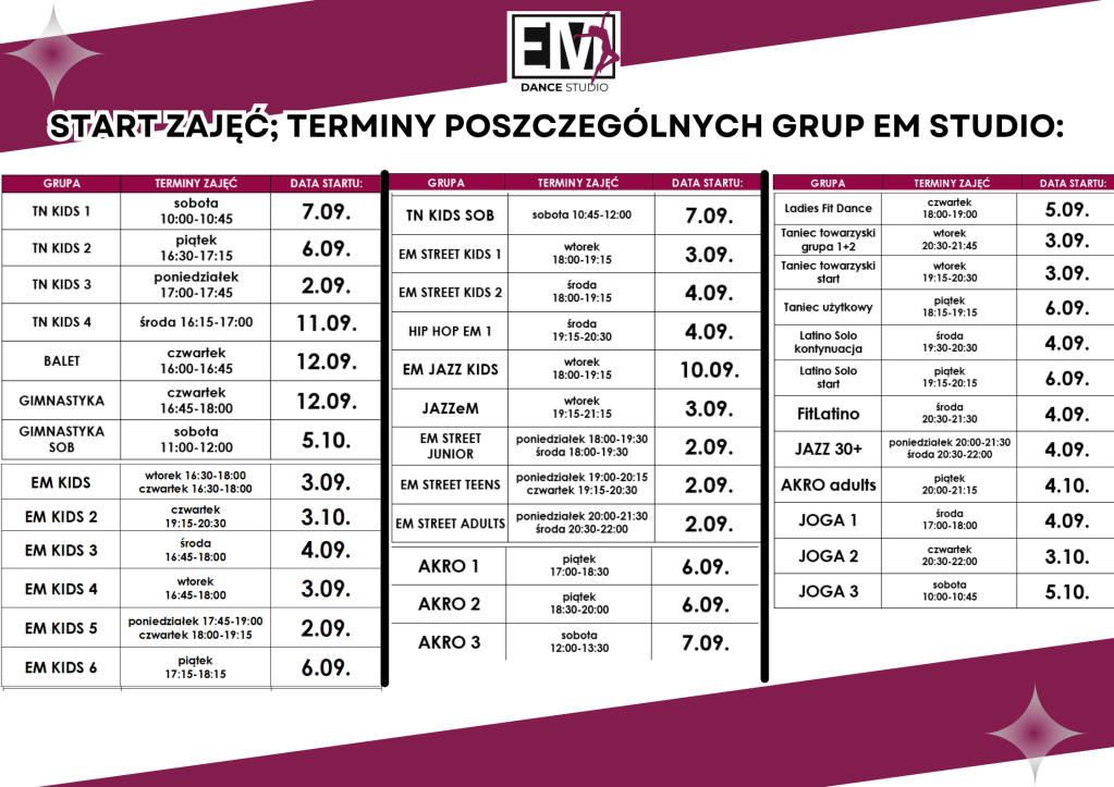 Zapisy: 883 023 030 lub mailowo: emstudiotanca@gmail.com
