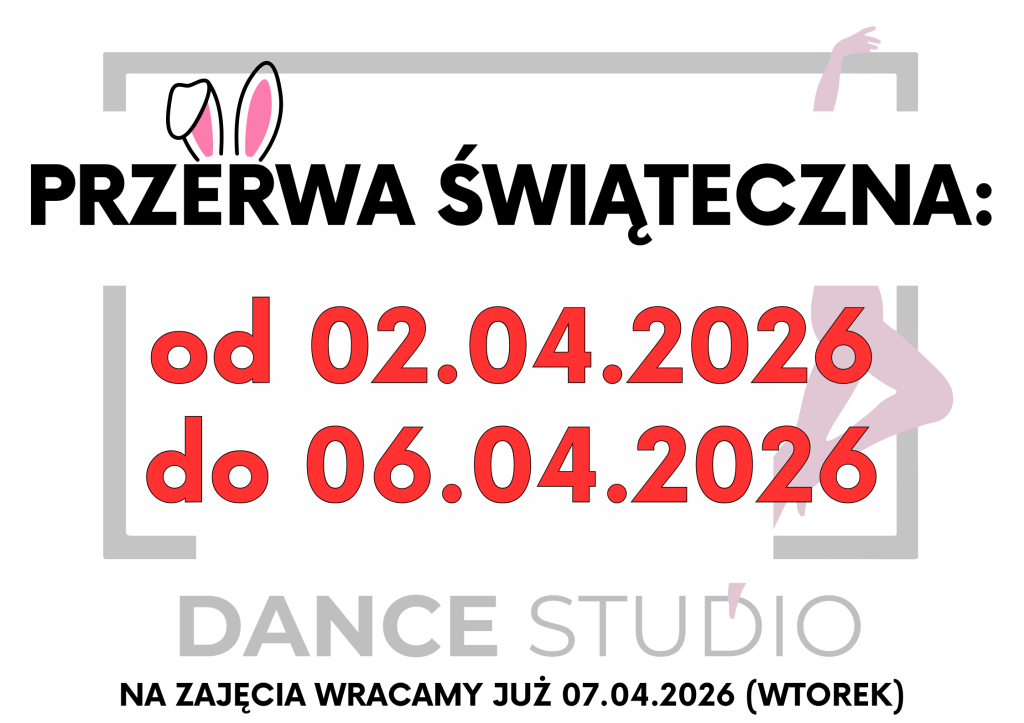 Informujemy, że zajęcia w Studio Tańca eM ODBYWAJĄ SIĘ bez zmian, według aktualnego planu zajęć. Dokonamy wszelkich starań, żeby każdy czuł się u nas bezpiecznie! Prosimy o przestrzeganie naszego regulaminu oraz obostrzeń panujących w naszym obiekcie.