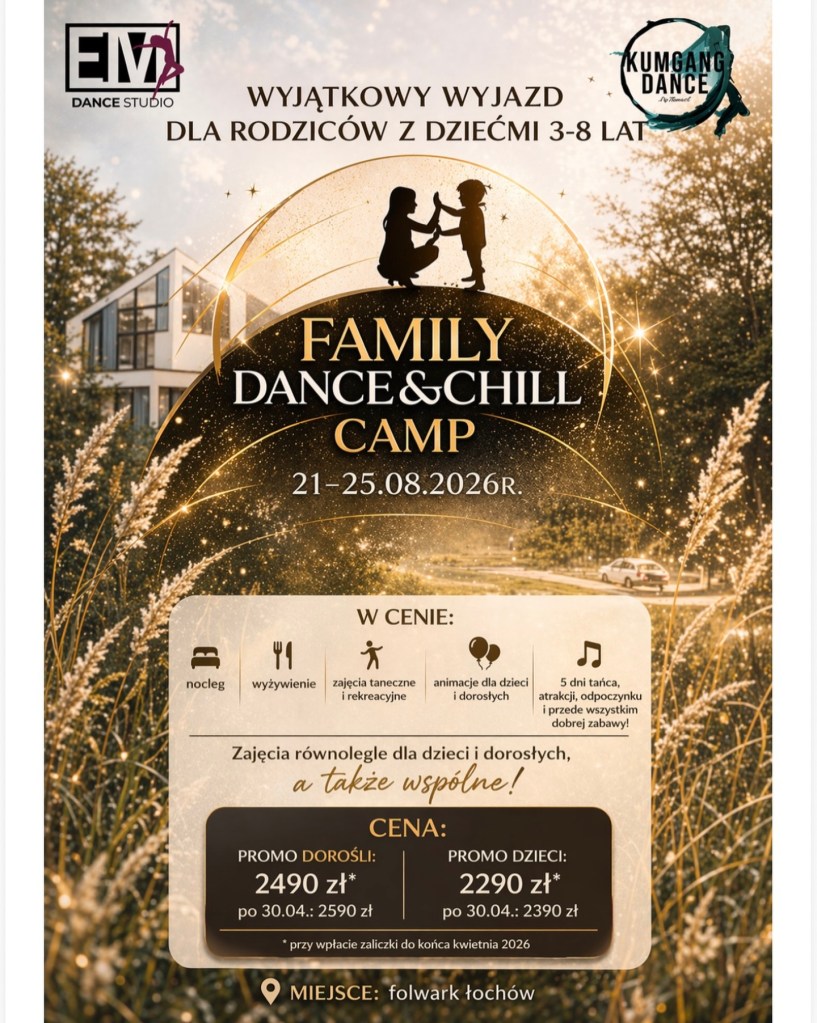 Gotówką w recepcji EM lub przelewem na konto: w tytule FAMILY DANCE&Chill Camp + imiona i nazwiska uczestników, za których wpłacamy zaliczki