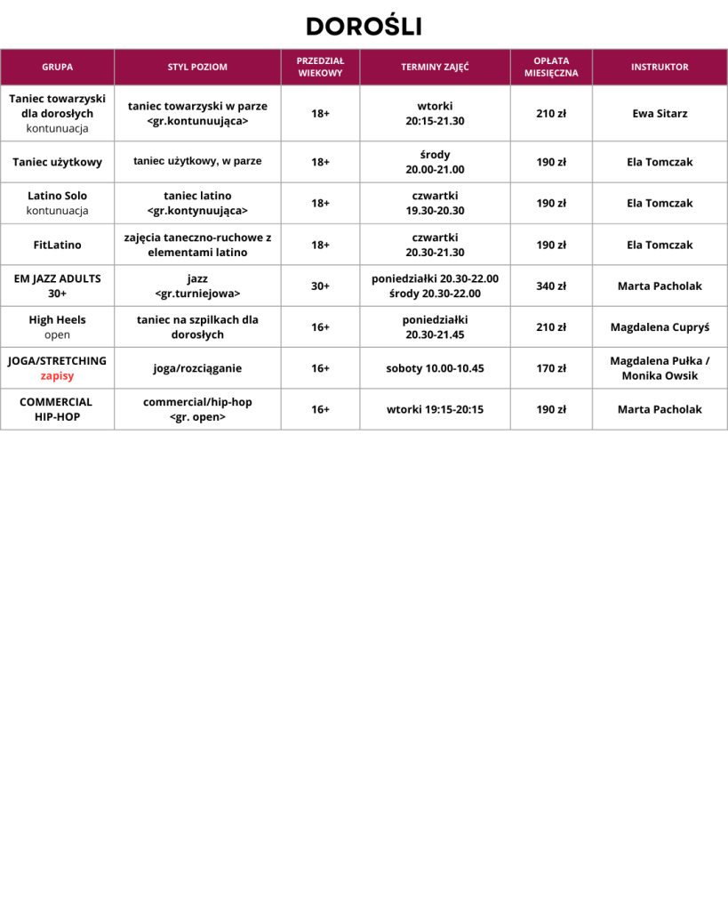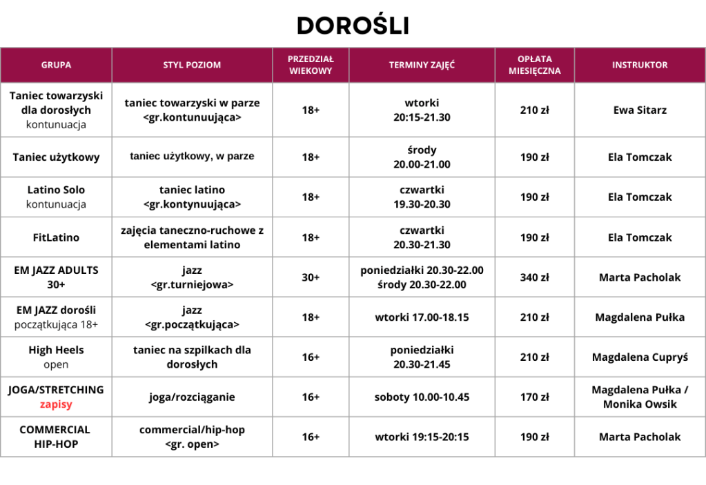 Przed rozpoczęciem kursu tańca prosimy o zapoznanie się z Regulaminem Studia Tańca eM.